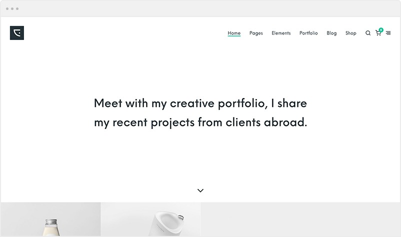 The creative homepage combines the minimalism and the interactivity with some modern well-crafted elements.