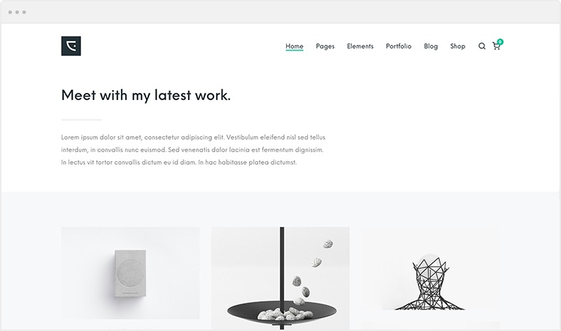 Unique and clean looking portfolio combined with page heading element, offers a very professional homepage.