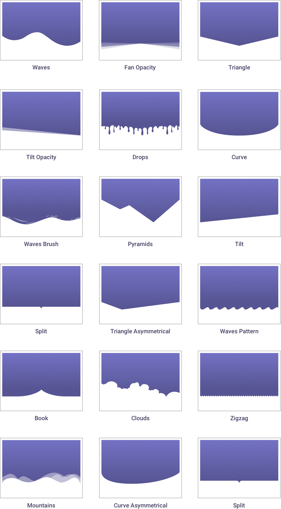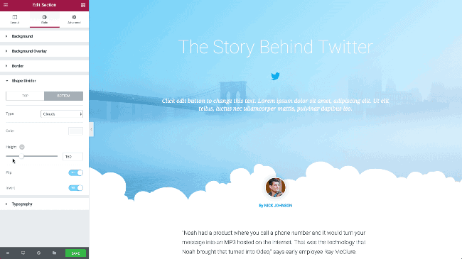 The Shape Divider feature uses highly optimized SVG shapes, that are manipulated and customized on the frontend editor.
